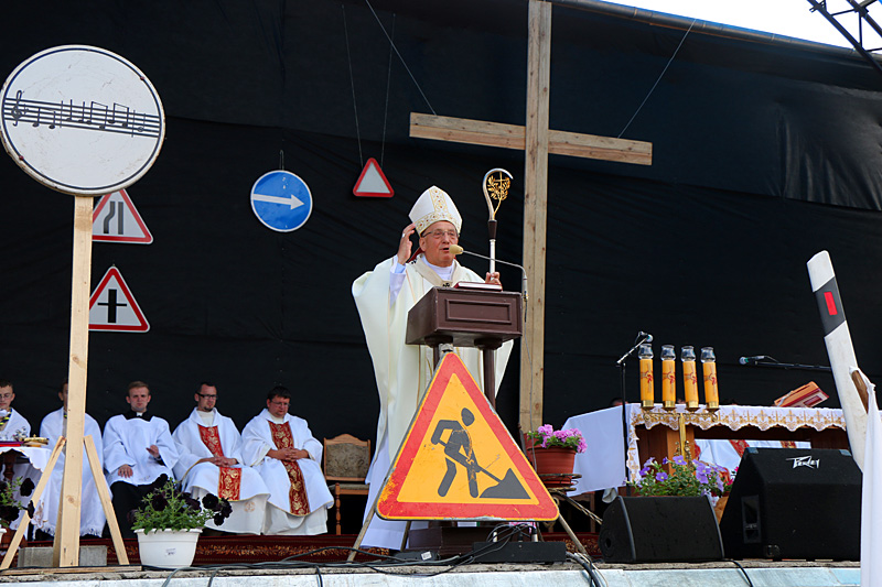 “Даручаем моладзь Беларусі Богу, каб яна жыла Евангеллем, каб маладыя людзі былі сведкамі Евангелля ў нашы нялёгкія часы”, - сказаў арцыбіскуп Тадэвуш Кандрусевіч на пачатку святой Імшы. У гаміліі, разважаючы над чытаннем Евангелля гэтай нядзелі, дзе распавядаецца пра цуд памнажэння хлябоў, Мітрапаліт звярнуў увагу, што пасля гэтага цуду за Езусам пайшла вялікая колькасць людзей. Але Ён таксама хацеў карміць іх хлебам вечнага жыцця. Калі ж Езус сказаў, што гэтым хлебам ёсць Яго Цела і Кроў, многія габрэі адышлі ад Яго.