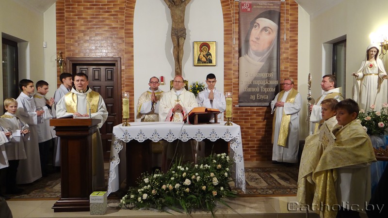 Супольнасць Кармэлітаў Босых у Мінску, супольнасць свецкіх кармэлітаў а таксама і парафіяне парафіі Божага Цела ў Мінску, якой апякуюцца айцы кармэліты адзначылі гэты дзень асабліва ўрачыстым чынам, заканчваючы юбілейны год Святой Імшой, якую узначаліў кс. бп Аляксандр Яшэўскі. 15 кастрычніка Каталіцкі Касцёл узгадвае успамін св. Тэрэзы ад Езус, Панны і Доктара Касцёла. Гэты дзень асабліва ўрачысты для ўсіх кармэліцкіх супольнасцяў, бо св. Тэрэза з'яўляецца рэфарматаркай Кармэлю. Але і 2015 год з'яўляецца асаблівым, бо гэта юбілейны год 500-годдзя з дня яе нараджэння. Браты кармэліты босыя разам з супольнасцю ІІІ Кармэліцкага Ордэна урачыста заспявалі нешпары ў гонар св. Тэрэзы, а затым адбылася св. Імша.