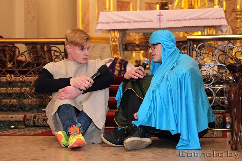 Нарачанская моладзь спынілася на біблійнай тэматыцы і ў новай, арыгінальнай форме перадала ўрыўкі з Евангелля пра паралізаванага чалавека, Марыю Магдалену і Юду Іскарыёта, які не паверыў у тое, што Бог можа яму прабачыць.