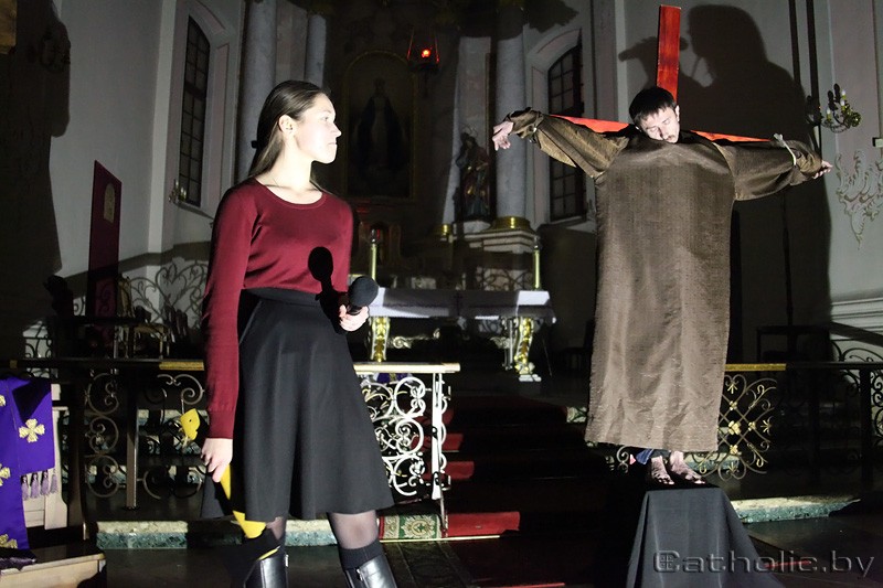 А маладыя акцёры з мінскай парафіі Св. Яна Хрысціцеля здолелі перадаць унутраны стан сучаснага грэшніка, які ўжо не верыць у вялікую моц і сілу ўкрыжаванага Езуса. Гэты грэшнік гатовы нават «ссячы крыж» у сваім сэрцы, каб поўнасцю заглушыць голас сумлення і аддаліцца ад Бога.