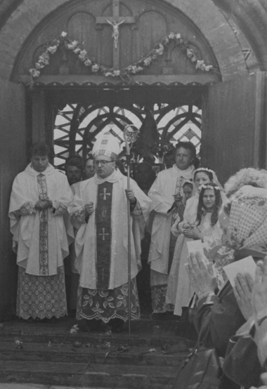 «Вось яна тут стаіць у шафе. Вось вы падыміце, якая яна, падыміце, — прапаноўвае жанчына і дае патрымаць адмысловую прыладу. — Я ж цягала такі цяжар. На пліту, з пліты, на пліту, з пліты. Вось гэтай штучкай я выпякала Камунію». А іншая парафіянка, Лілія Агейчык, да веры прыйшла нядаўна, 6 гадоў таму. Аднак яна добра памятае час, калі касцёл яшчэ быў зачынены, таму што таксама жыве насупраць святыні. «У тыя часы, гэта быў 1978 год, тут усё было разбіта і разбурана, не было ўвогуле нічога. Я з дзецьмі тады гуляла, таму бачыла, а хадзіць у касцёл я не хадзіла», — распавяла жанчына. У 1979 годзе, як распавядаюць відавочцы, парафіяне пачалі прасіць савецкія ўлады адчыніць касцёл для вернікаў. У Маскву нават ездзіла цэлая «дэлегацыя» прыкладна з 5-7 чалавек. Гэта парафіяне касцёла Алена Валковіч, Юзэфа Баравік, Ганна Зайцава, Ванда Скуратовіч, Франц Фалей і Уладзіслаў Лапо. «Мы ездзілі ў Маскву 7 разоў. Нас прымалі памочнікі Уладзіміра Кураедава (старшыні Савета па справах рэлігій пры Савеце Міністраў СССР — Рэд.). Спачатку яны нам адказвалі: “мы вам паведамім, едзьце дадому”. І доўгі час нічога не атрымоўвалася», — распавядае Уладзіслаў Лапо, адзін з парафіян, удзельнікаў «дэлегацыі».