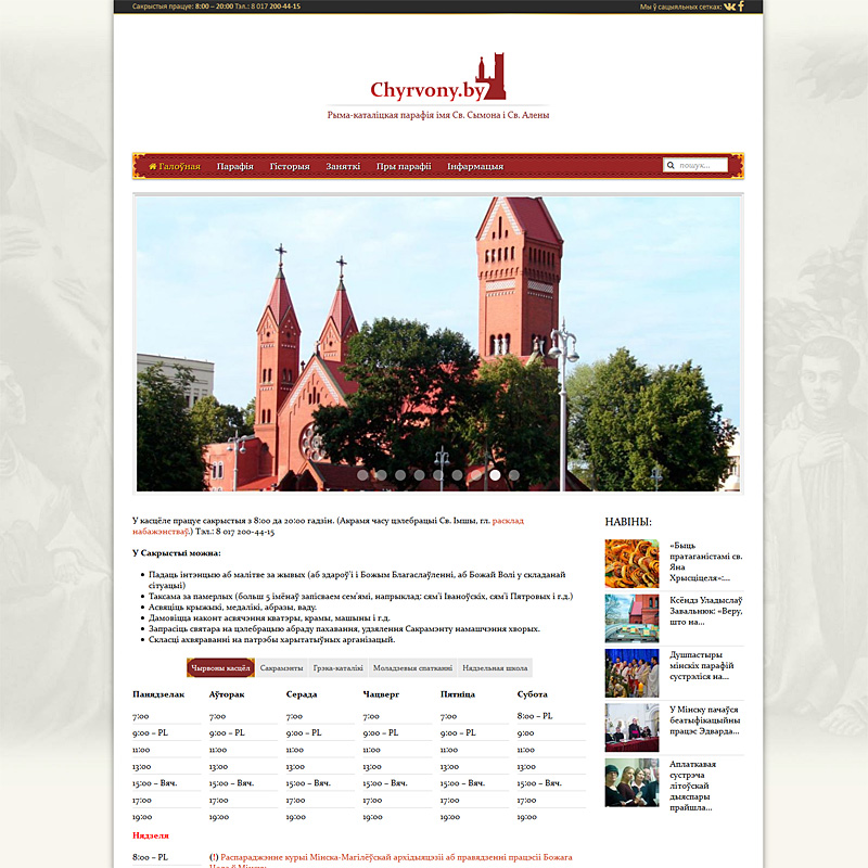15 мая распачаў сваю дзейнасць афіцыйны сайт парафіі Свв. Сымона і Алены ў Мінску. Сhyrvony.by акрамя актуальных навін з жыцця Касцёла і парафіі змяшчае карысную інфармацыю для парафіян і ўсіх вернікаў Мінска. Ініцыятарам і аўтарам ідэі сайта стаў дыякан Аўгуст Калясінскі, які ў мінулым годзе распачаў сваё служэнне ў Чырвоным касцёле. «Калі я прыехаў у парафію Свв. Сымона і Алены, я паглядзеў, што ў такой вялікай парафіі павінна быць інтэрнэт-старонка. Але ў такіх выпадках заўсёды ўзнікае пытанне: хто гэтым будзе займацца? Я, напрыклад, сам з нуля магу пад ключ рабіць інтэрнэт-старонкі. Таму проста падыйшоў да пробашча з такім пытаннем. Пробашч парафіі кс. Уладзіслаў Завальнюк ахвотна падтрымаў гэту ідэю і даў сваё благаслаўленне, каб распачаць такую працу», — распавёў дыякан.