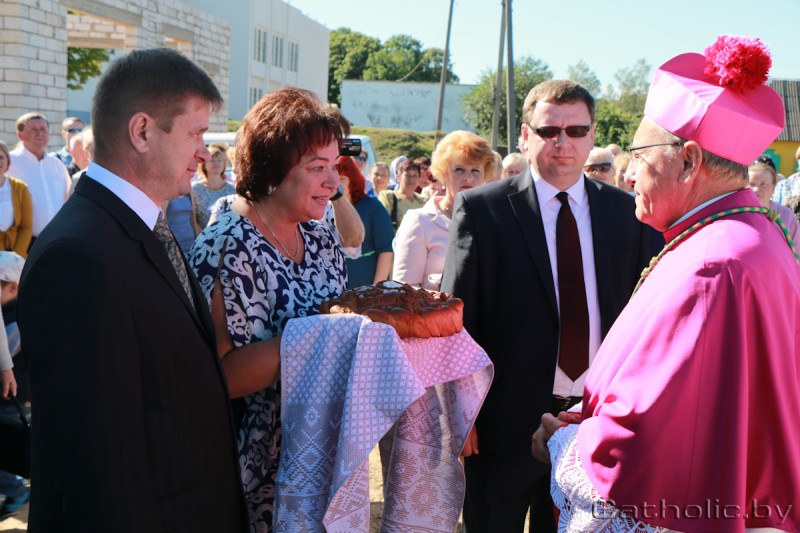 «Таму сёння з радасцю я благаслаўляю камень са Святой Зямлі, які ў знак трываласці будучай святыні, разам з адмысловай капсулай, у якой змешчана афіцыйнае пацвярджэнне гэтай падзеі, будзе ўмураваны ў сцяну гэтага касцёла ў Старых Дарогах», — сказаў Мітрапаліт.