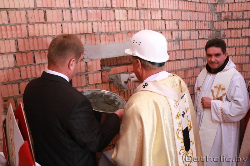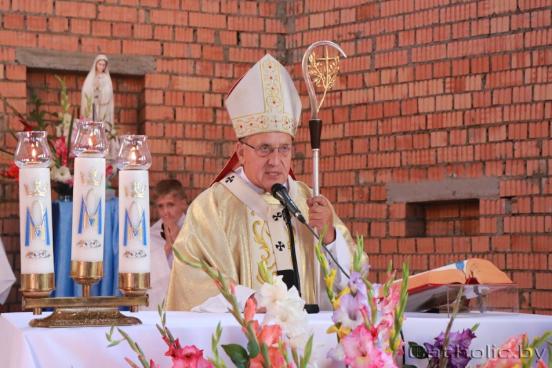 «Нездарма Хрыстус кажа, што дом неабходна будаваць на скале, а не на пяску, каб ён не разваліўся», — адзначыў іерарх і дадаў, што асвячэнне вуглавога каменя і яго закладка таксама падкрэсліваюць сакральнасць будоўлі. Мітрапаліт заклікаў вернікаў быць удзячнымі Богу, «які праз смерць свайго Сына Езуса Хрыста праявіў да нас сваю міласэрнасць і дазваляе будаваць новы касцёл, які стане месцам сустрэчы чалавека з Богам».