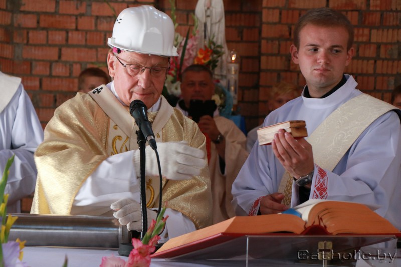 | Капсулу з каменем са Святой Зямлі заклалі ў сцяну новага касцёла ў Старых Дарогах |
