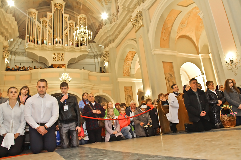 «Сёння мы святкуем радасную навіну перамогі Езуса над смерцю і грахом. Калі праз сакрамэнтальнае жыццё мы з’яўляемся ўдзельнікамі гэтай перамогі, то ведаем, хто ёсць наш Бог. Гэта не фальшывыя богі сучаснага свету — поспех, кар’ера, грошы, наркотыкі, алкаголь і г.д., але сапраўдны Бог, якім з’яўляецца уваскрослы Езус Хрыстус», — адзначыў у Пасхальную вігілію Мітрапаліт Мінска-Магілёўскі арцыбіскуп Тадэвуш Кандрусевіч, які ўзначаліў Эўхарыстычную літургію.