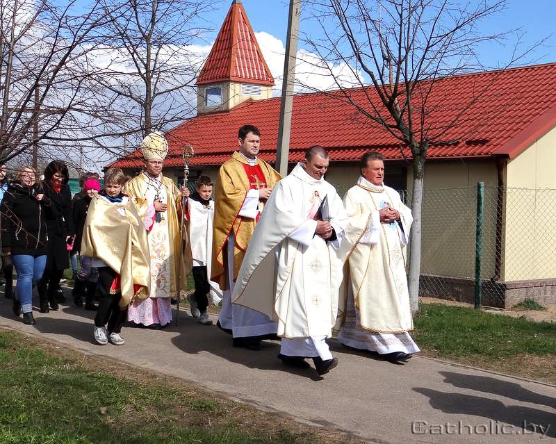 На пачатку Імшы кс. Генадзь Кухарэвіч адзначыў, што кожны чалавек патрабуе Божай любові, Яго міласэрнасці. «Каб Божая міласэрнасць разлілася на ўвесь свет, яна ў першую чаргу павінна ўвасобіцца ў кожнай сям’і», — сказаў пробашч. Менавіта парафіяльныя сем’і і сталі галоўнымі ўдзельнікамі ўрачыстасці: чыталі слова Божае, спявалі псальмы, прыносілі да алтара дары. Адным з такіх дароў стала пераносная капліца Маці Божай Фацімскай. Біскуп Аляксандр Яшэўскі благаславіў капліцу і ў гэты ж дзень распачалася яе перэгрынацыя па сем’ях парафіі.