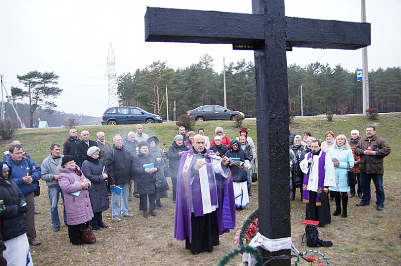 «Гэты крыж – месца вельмі сімвалічнае, таму што ў гэтых ваколіцах ў 30-я гады, перш за ўсё ў 1937 годзе, расстрэльвалі вельмі шмат католікаў, праваслаўных, святароў абедзвюх канфесій. І ў тутэйшых лясах знаходзілі шмат такіх месцаў, як гэта, – сказаў ксёндз Славамір Ласкоўскі. – І мы прыходзім сюды з любоўю, таму што Езус казаў сваім вучням любіць ворагаў і маліцца за іх. Мы ведаем сведчанні нашых пакутнікаў, якія ў момант расстрэлаў маліліся ў тым ліку і за сваіх карнікаў. Гэты подзвіг магчымы толькі пры адной умове – калі ў нашым сэрцы ёсць Святы Дух. Таму збіраемся тут не для таго, каб зводзіць рахункі з кімсьці, а каб маліцца і за нашых братоў, і за іх забойцаў. Разумеем, што жыццё чалавека не канчаецца смерцю, а толькі змяняецца. Прыходзім дзякаваць Богу за гэтых сведкаў веры, бо сёння развіваецца Касцёл дзякуючы таму, што гэтая зямля насычана крывёй пакутнікаў. Мы ідзем па іх слядах і вучымся вернаму служэнню Богу аж да праліцця крыві, калі ў гэтым ёсць Яго воля».