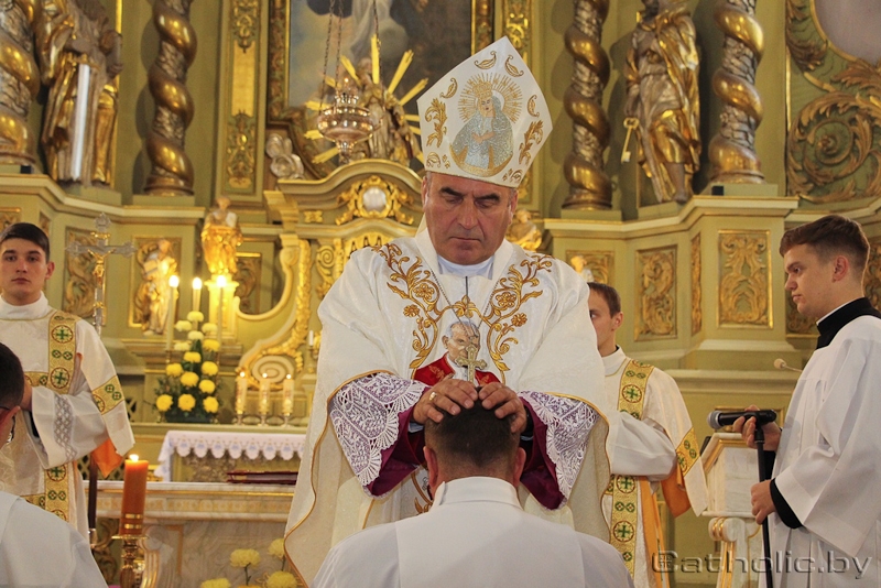 Словам «прысутнічаю» кандыдаты выказалі гатоўнасць стаць пры Крыжы Хрыста, каб даваць сведчанне сваёй веры. «Вы пакліканы весці іншых да Бога, да неба, паказваючы ім звышнатуральныя вартасці. "Я гатовы" — гэта форма падрыхтаванасці, адказ на Божае пакліканне і намер ісці туды, куды пасылае Хрыстус, каб несці надзею, сеяць дабро», — звярнуўся да кандыдатаў ардынарый Пінскай дыяцэзіі і ўказаў на іх асаблівае пакліканне — «выканаць дыяконію надзеі ў сучасным свеце». Праз ускладанне рук біскупа і малітву кансэкрацыі кандыдаты атрымалі моц дыяканскага служэння. Іерарх выказаў радасць, што праз служэнне гэтых дыяканаў, а ў будучыні — прэзбітэраў, у бліжэйшыя дзесяцігоддзі ў мясцовым Касцёле словы «Бярыце і ешце, гэта Цела Маё… Бярыце і піце, гэта келіх Маёй Крыві…» будуць выказвацца з моцай і дзейсна.