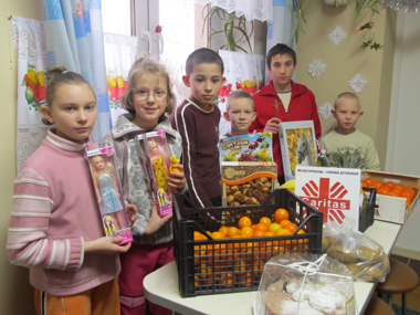 Для вялікай сям’і ксёндз Станіслаў Мжыглуд і прадстаўнікі парафіяльнага «Caritas» пры фінансавай падтрымцы «Caritas» Віцебскай дыяцэзіі прывезлі пачастункі, развівальныя гульні, цацкі і шчырыя словы пажаданняў Божай ласкі на ўсё жыццё.