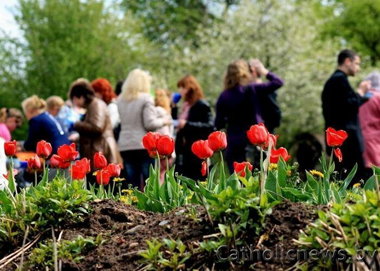 Вакол касцёла палымнеюць 1528 цюльпанаў, згодна з колькасцю загінуўшых тут у лютым 1943 года.