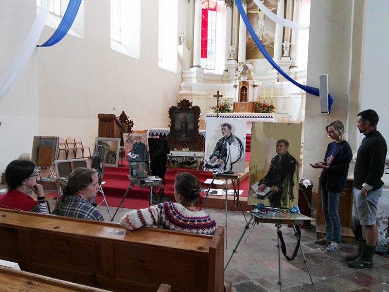 21 ліпеня да мастакоў завітае хрысціянская пісьменніца Ірына Жарнасек. «Галоўная мэта пленэру — наладжванне мастоў паміж рэлігіяй і мастацтвам, — падкрэслівае кс. Сяргей Сурыновіч. — Прыезд жа да нас пісьменніцы Ірыны Францаўны — гэта пошук сувязі паміж рэлігіяй, жывапісам і літаратурай». Аксана Ючкавіч Фотаздымкі са старонкі кс. Сяргея Сурыновіча ў facebook |