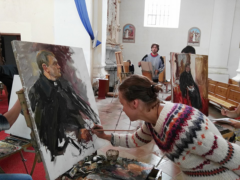 Мастак-мэтр Дзмітрый Сурыновіч за працай Тыя мастакі, якія прымалі ўдзел у мінулым годзе, адразу прыняліся за працу, бо ўжо ведалі, што будуць рабіць. Для «новых» жа былі зроблены спецыяльныя «ўводзіны» і знаёмства з друйскімі ваколіцамі. Як адзначыў кс. Сяргей Сурыновіч, пакуль што працуюць мастакі з Беларусі, але звярталіся з пытаннямі аб удзеле і мастакі з іншых краін, напрыклад, Румыніі, Галандыі і Польшчы. Верагодна, у чарговы раз пленэр зможа набыць міжнародны характар. Кожны з мастакоў, які прыехаў на пленэр, пакіне ў Друі па адной сваёй працы.