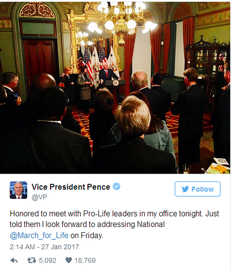 Чуткі пра ўдзел у «Маршы за жыццё» віцэ-прэзідэнта ЗША пэўны час ужо хадзілі вакол Белага Дому. Цяпер з’явілася і афіцыйнае пацвярджэнне: віцэ-прэзідэнт ЗША Майкл Пенс возьме ўдзел у «Маршы за жыццё».